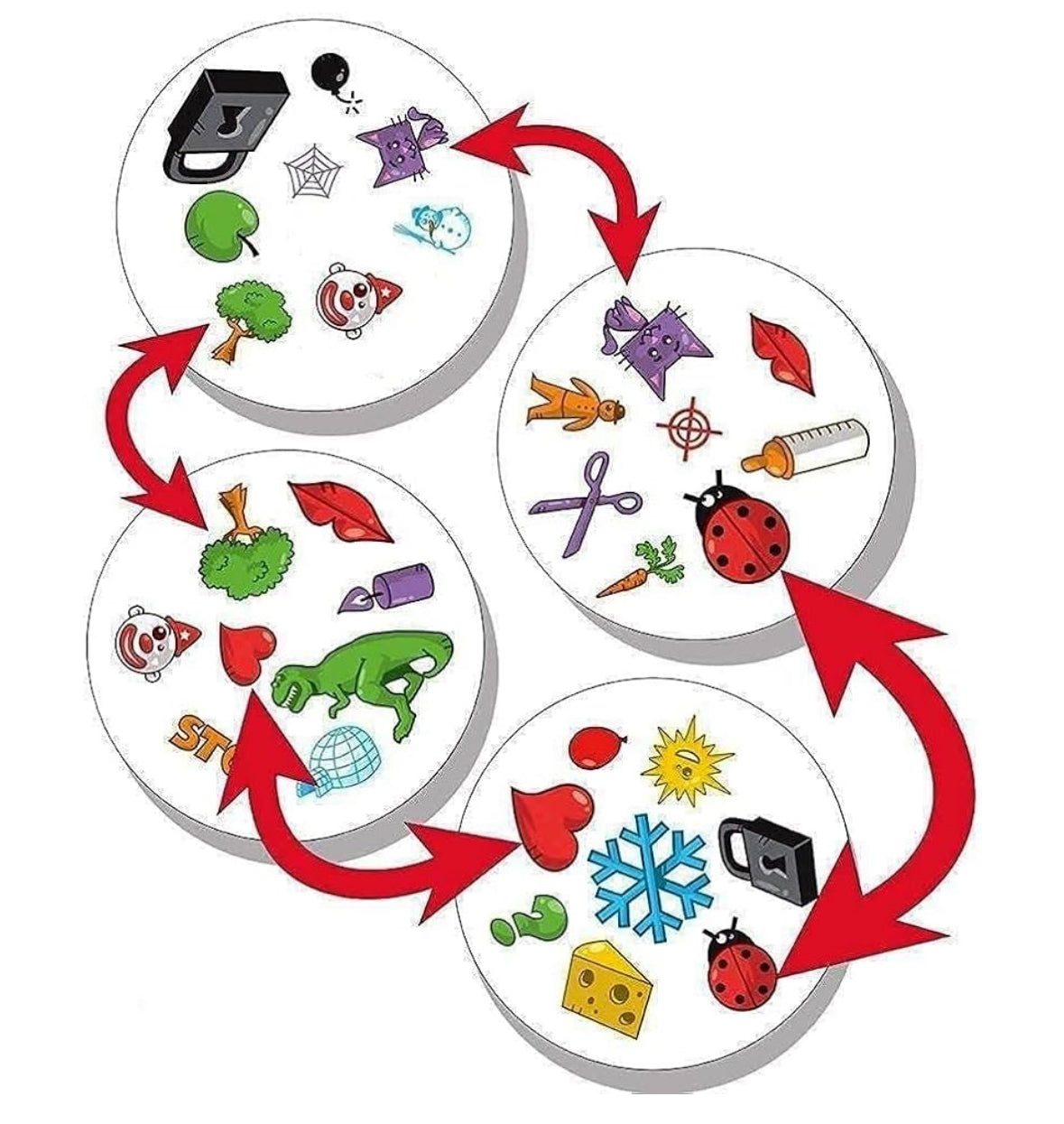 - ★Package contains 50 cards, 50 symbols, 8 symbols per card, Always only 1 symbol shared between any 2 cards!✔