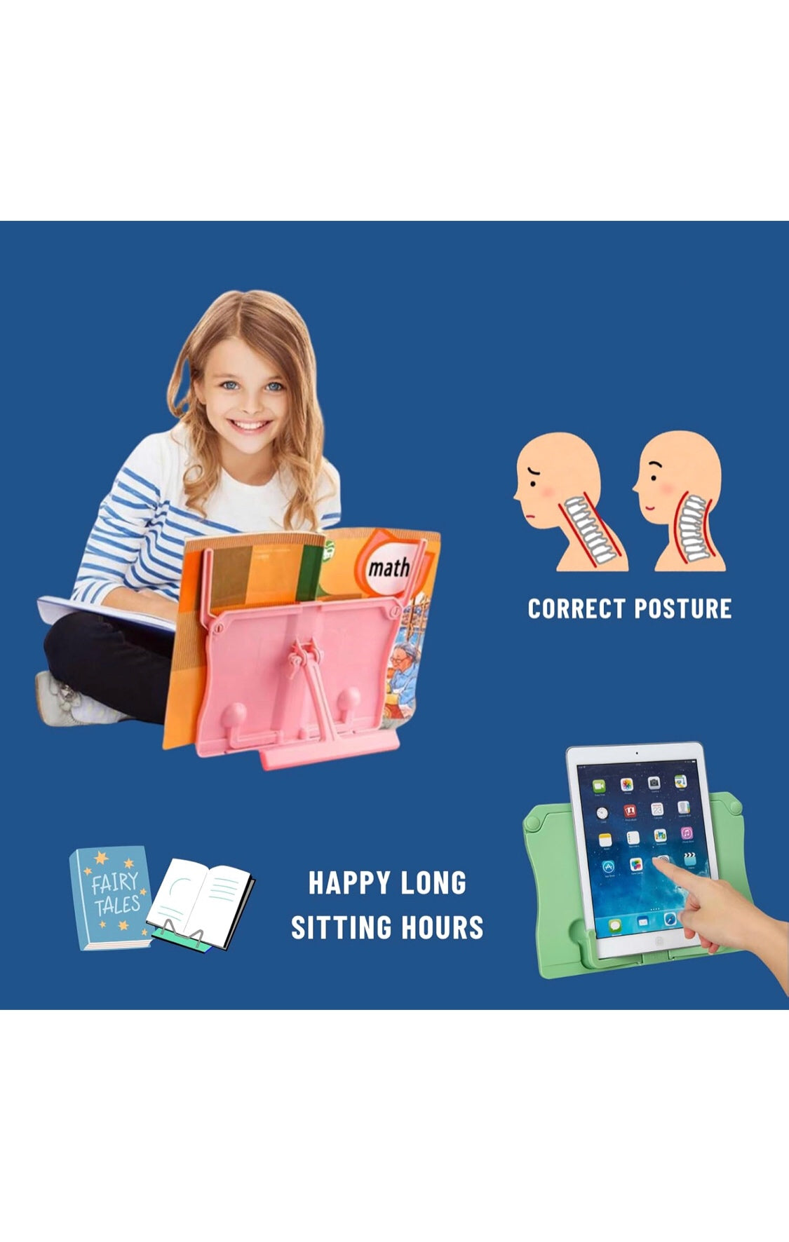 - MANAGE NECK PAIN & BACK PAIN - The ergonomic design this book holder for reading helps to reduce strain on neck, shoulders, and back by allowing you to adjust the angle and height of the reading book. Now you no longer have to hunch over book with stooping shoulders, and you can enjoy long reading sessions in a more relaxed and ergonomic position.