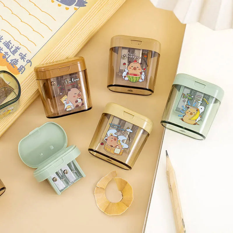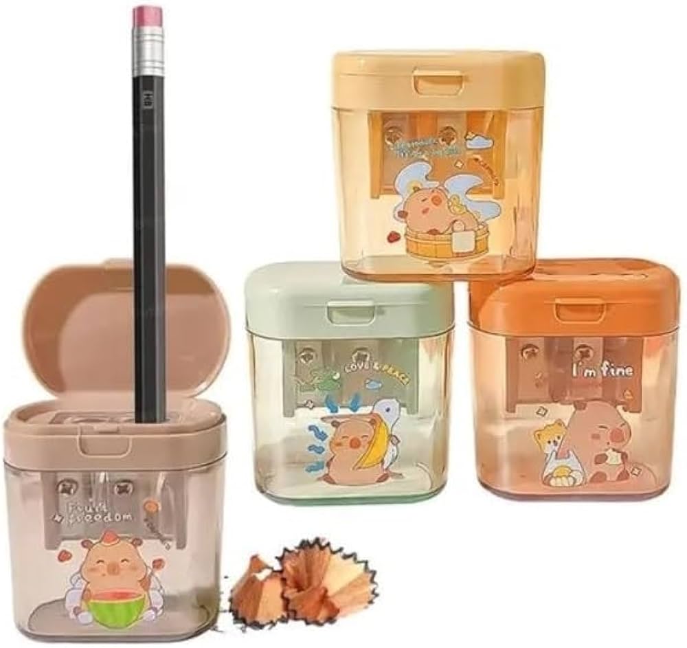 A compact and adorable pencil sharpener crafted for both regular and jumbo pencils. Featuring fun cartoon designs and a transparent container to neatly collect shavings, it keeps your desk clean and colourful. Easy to carry, easy to use — perfect for school, homework time, and creative fun anywhere.