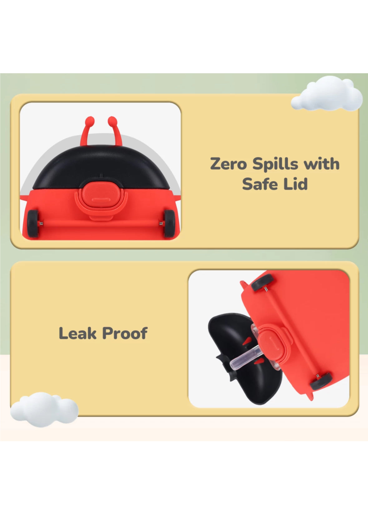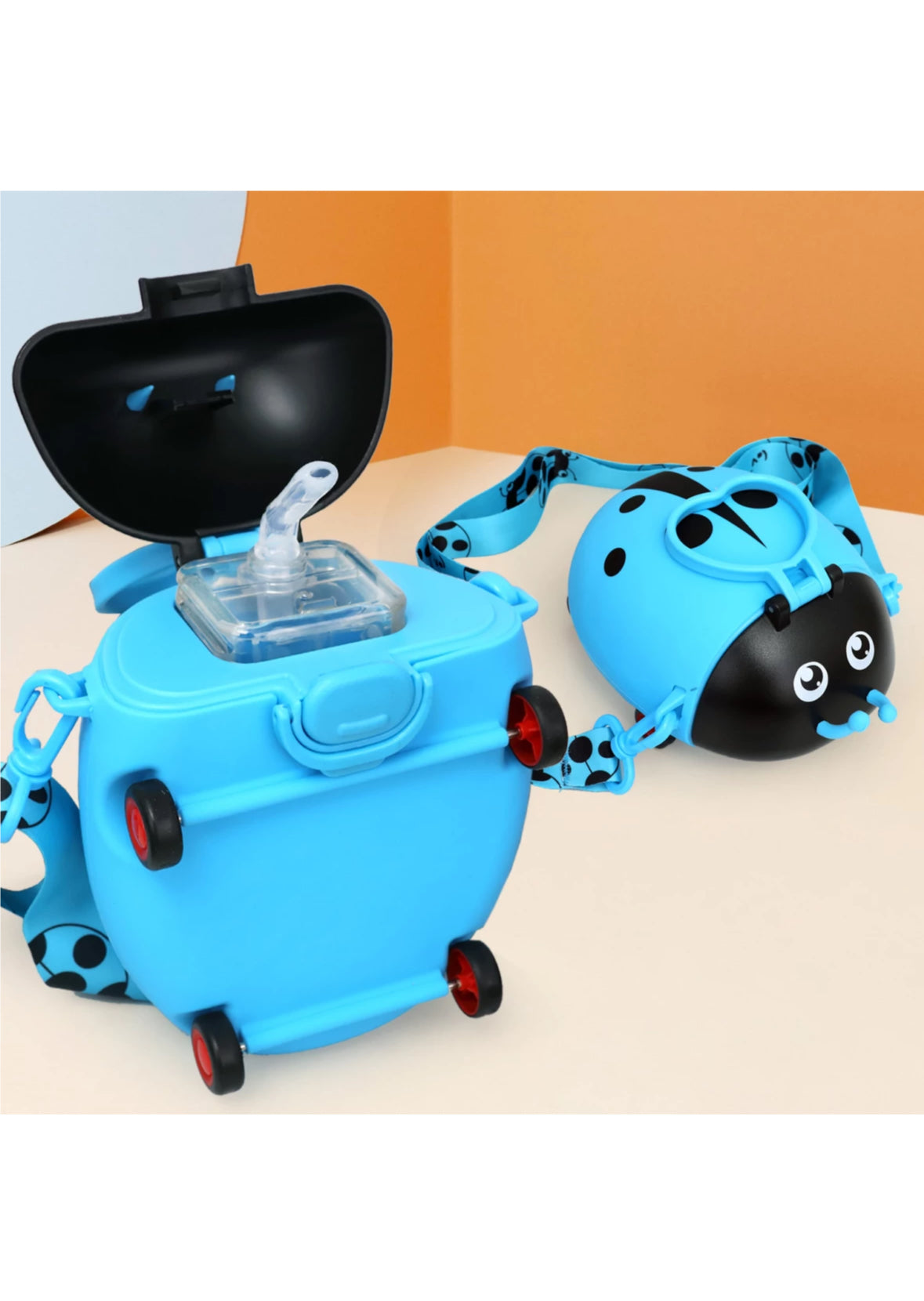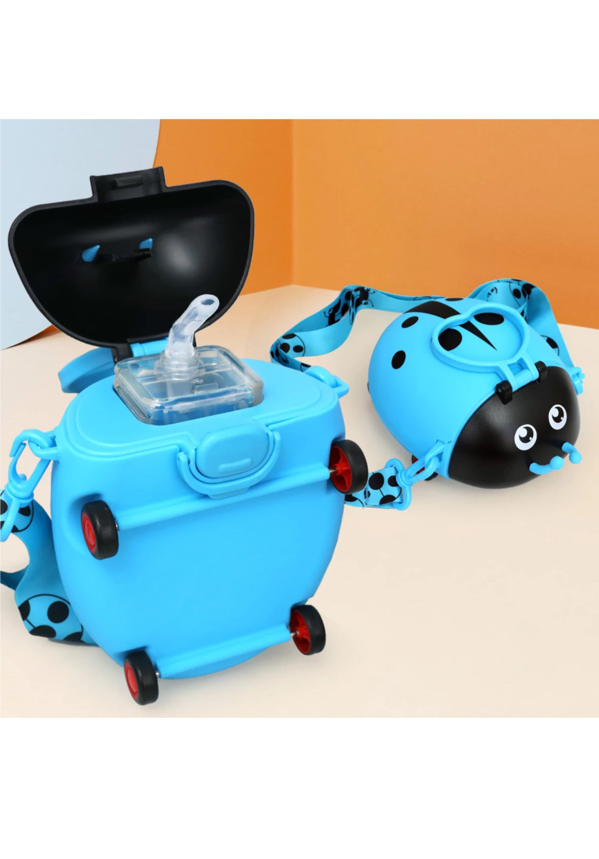 Lady Bug Shape Water Bottle With Adjustable Shoulder Strap, 4 Wheel & Straw, Portable Drinking Cup Water Bottle For Kids