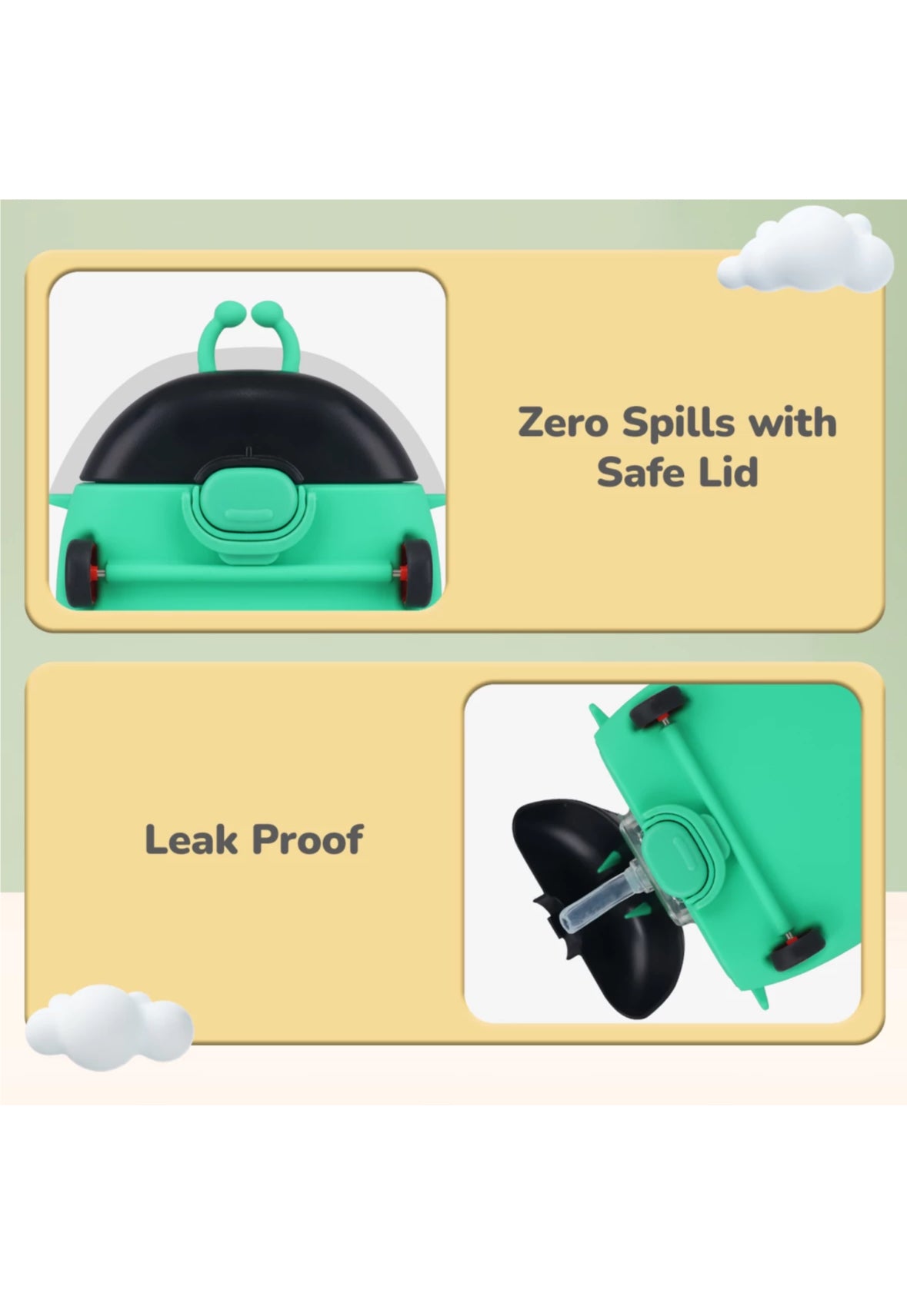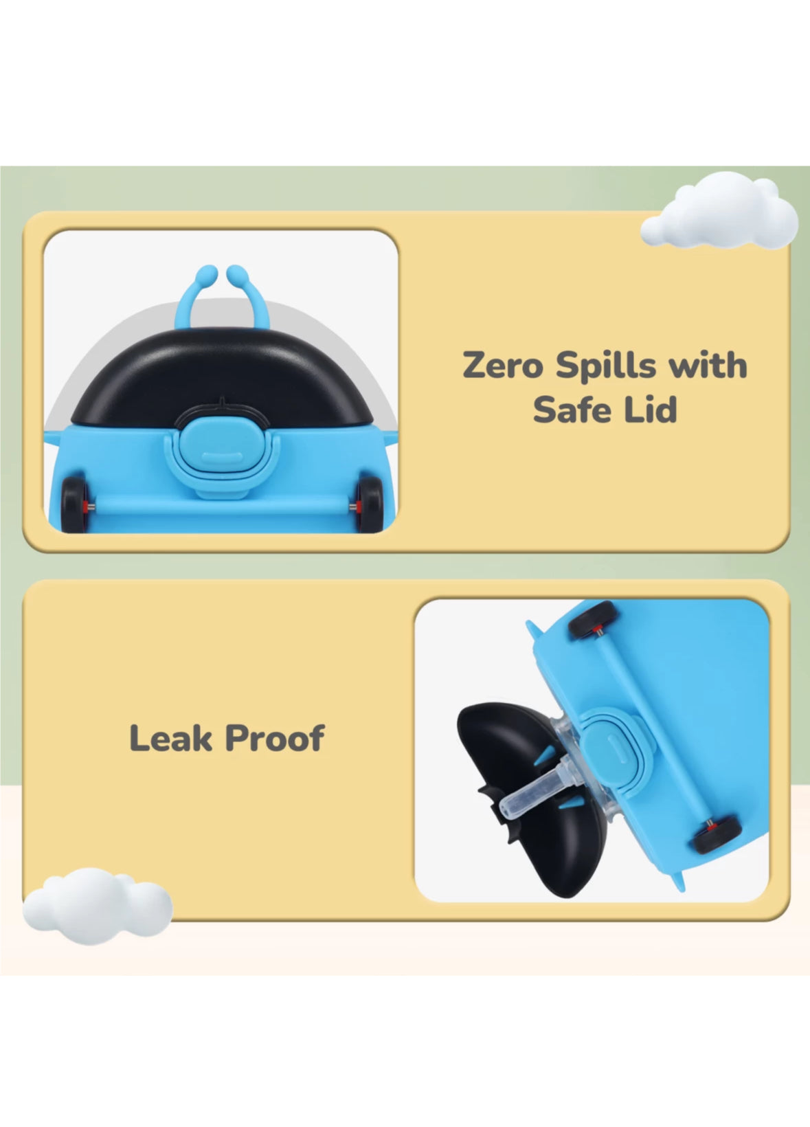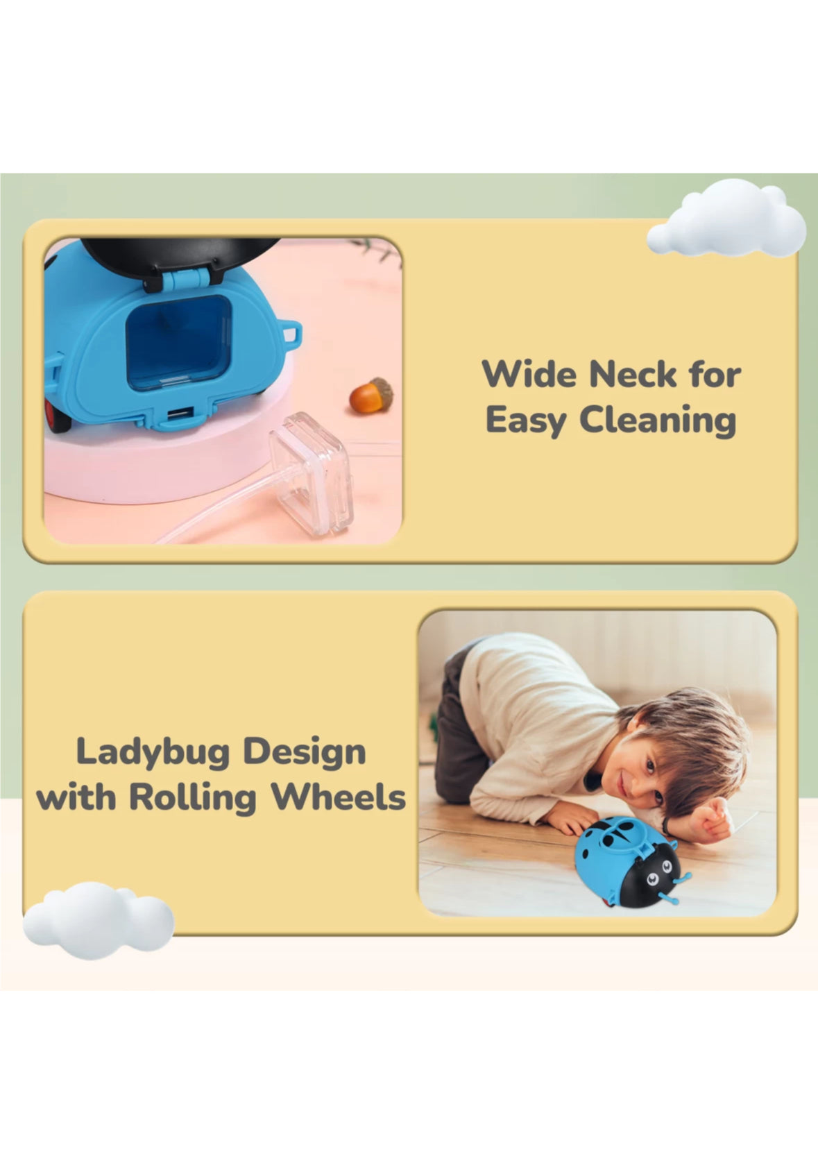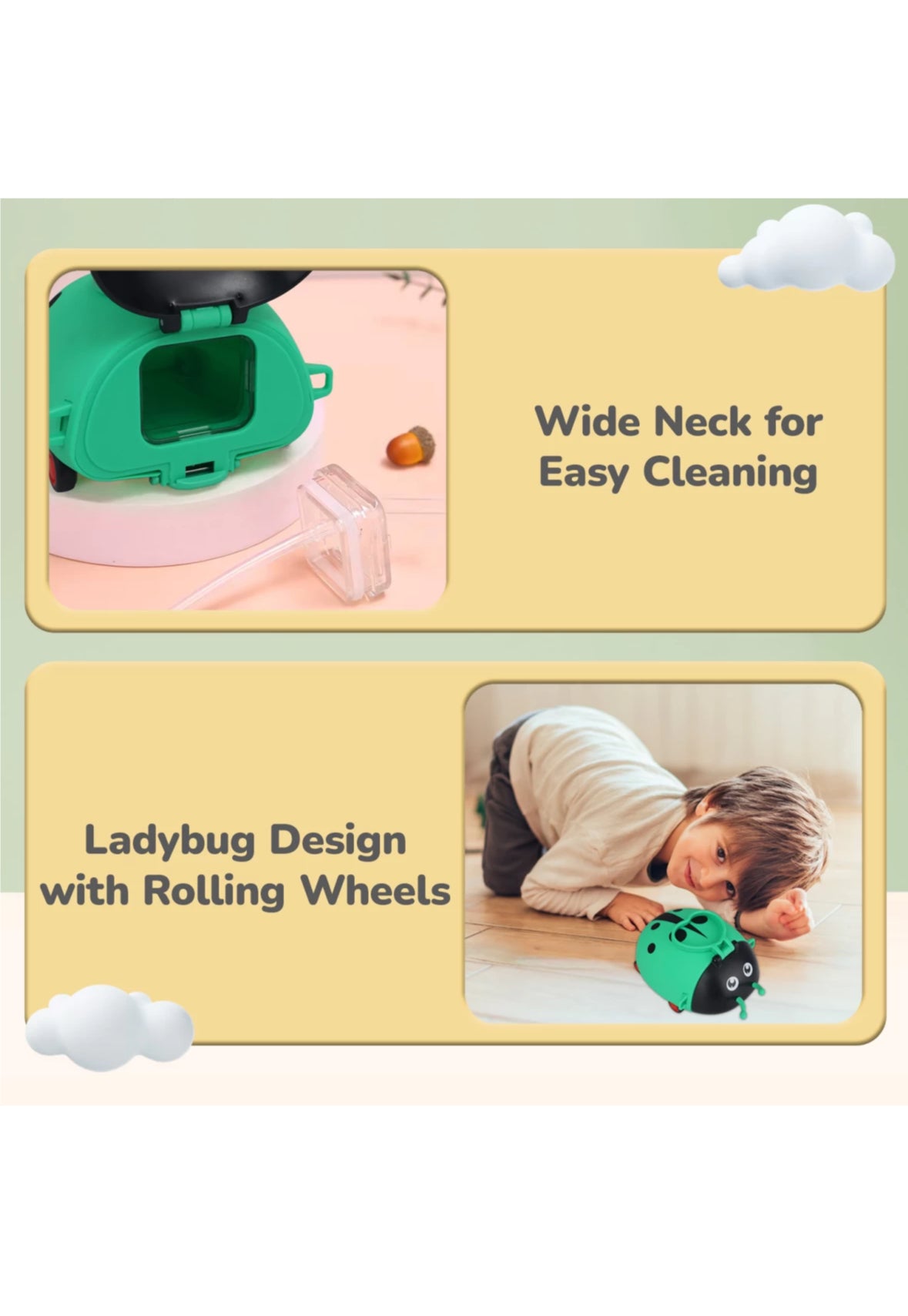 Lady Bug Shape Water Bottle With Adjustable Shoulder Strap, 4 Wheel & Straw, Portable Drinking Cup Water Bottle For Kids
