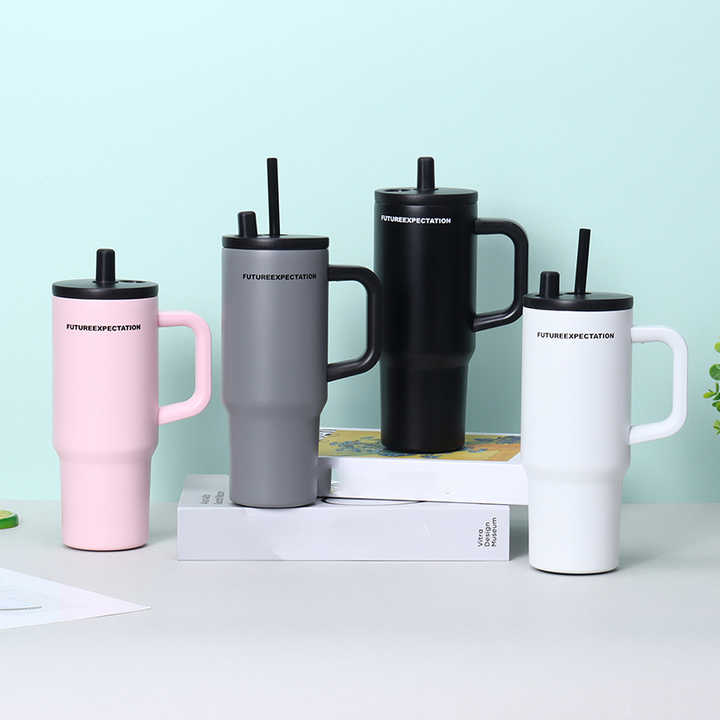 New Style Vacuum Travel Coffee Mug 316 Stainless Steel Tumbler with Straw and Handle Insulated Mug Cups Water Bottle