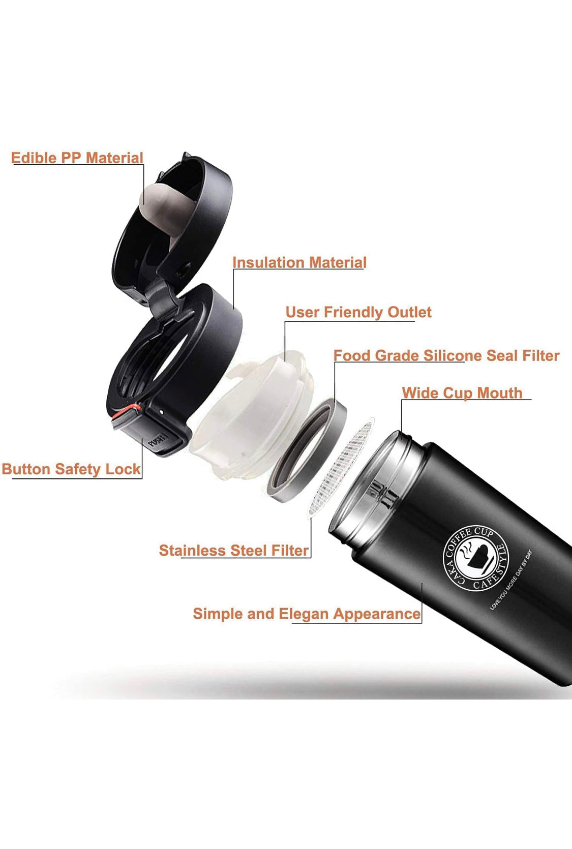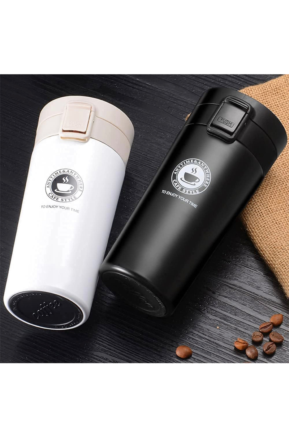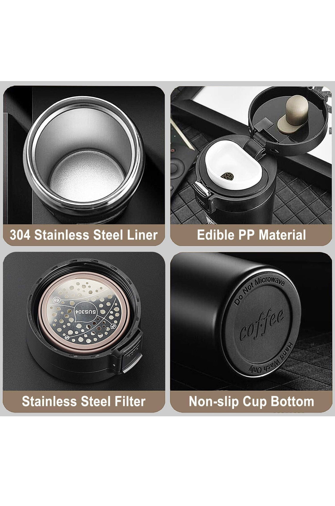 TRENDING Coffee Travel Mug, Insulated Coffee Cup with Leakproof Lid, Vacuum Insulation Stainless Steel Reusable for Hot Cold Coffee, Water, and Tea, Thermal Mug with Non-Slip Protective Cover, 380ml